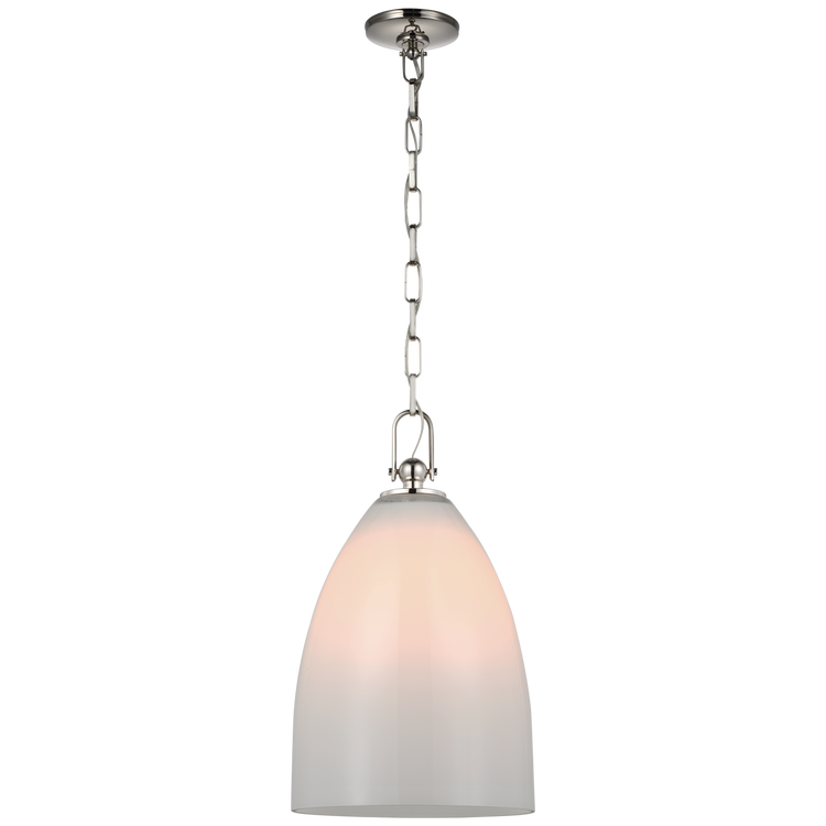 Andros Large Pendant in Polished Nickel with White Glass Open Box