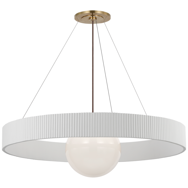 Arena 42" Ring and Globe Chandelier in Hand-Rubbed Antique Brass and Matte White with White Glass Open Box