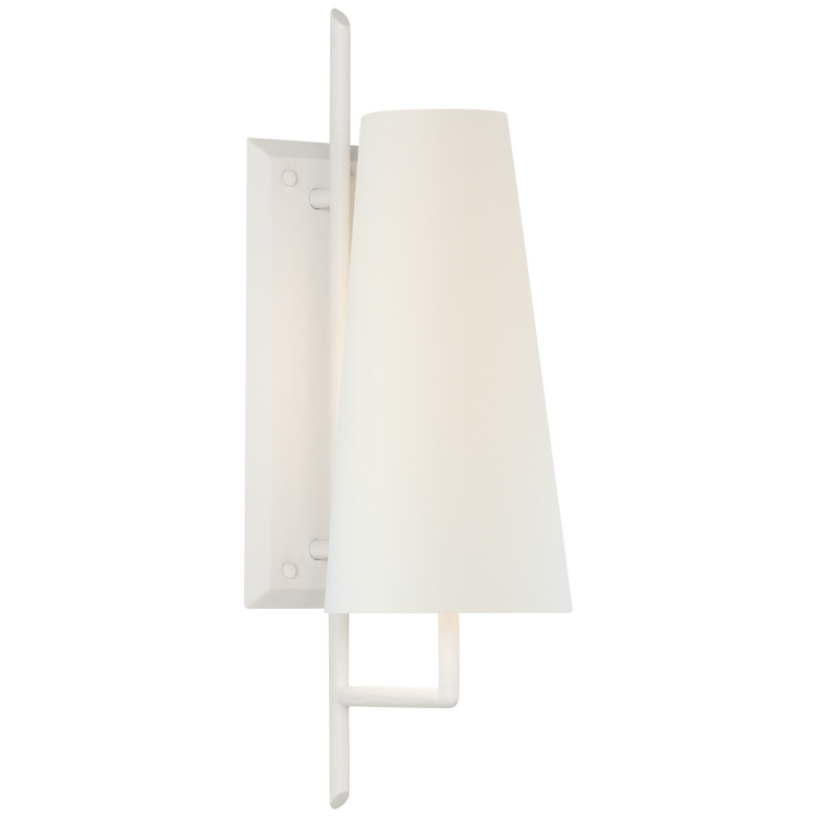 Ashton Large Single Sculpted Sconce in Plaster White with Linen Shade Open Box