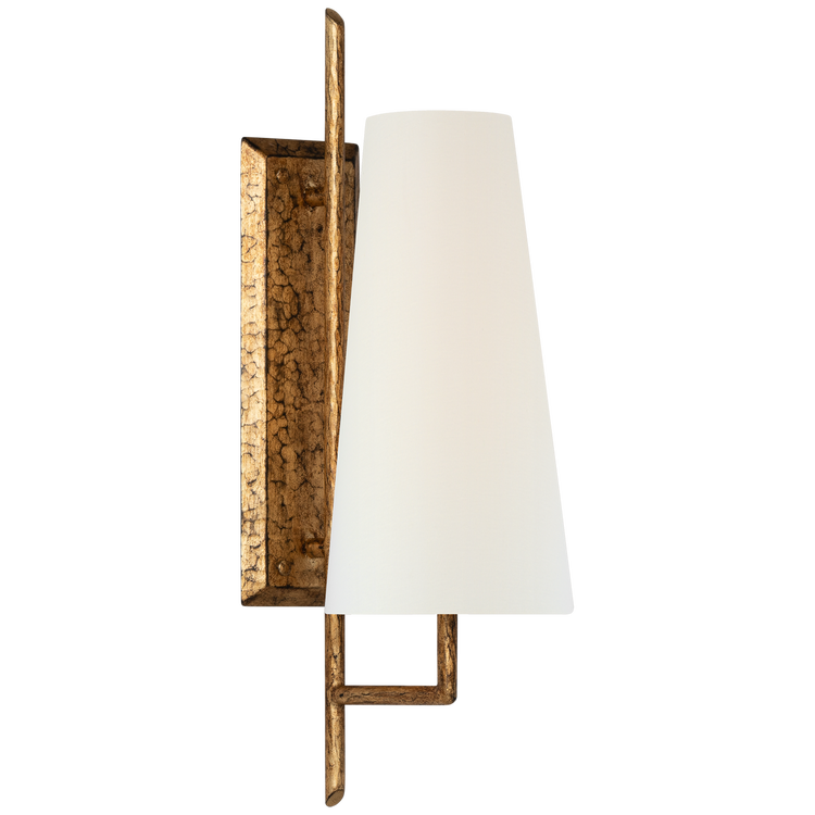 Ashton Large Single Sculpted Sconce in Gilded Iron with Linen Shade Open Box
