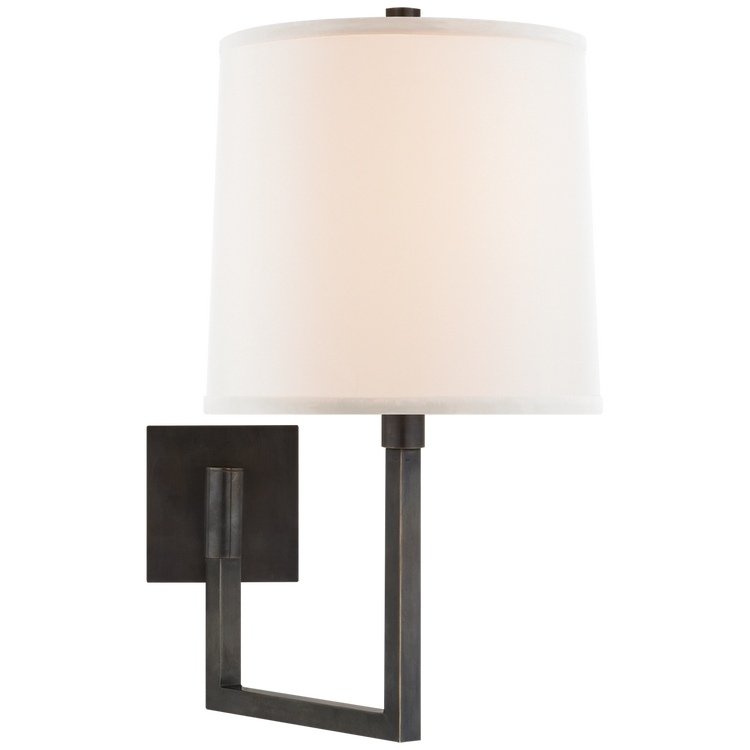 Aspect Large Articulating Sconce in Bronze with Ivory Linen Shade Open Box