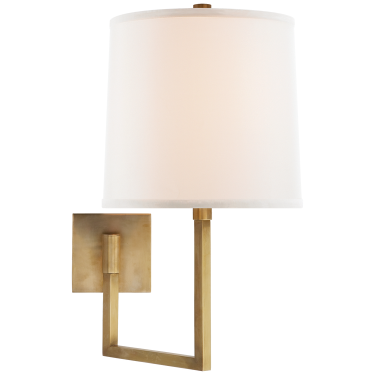Aspect Large Articulating Sconce in Soft Brass with Ivory Linen Shade Open Box