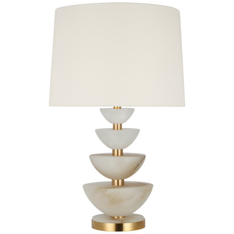 Aubert 28" Table Lamp in Alabaster and Hand-Rubbed Antique Brass with Linen Shade