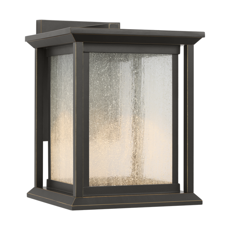 Audley Small LED Lantern Antique Bronze Distressed Seeded Glass Bulbs Inc