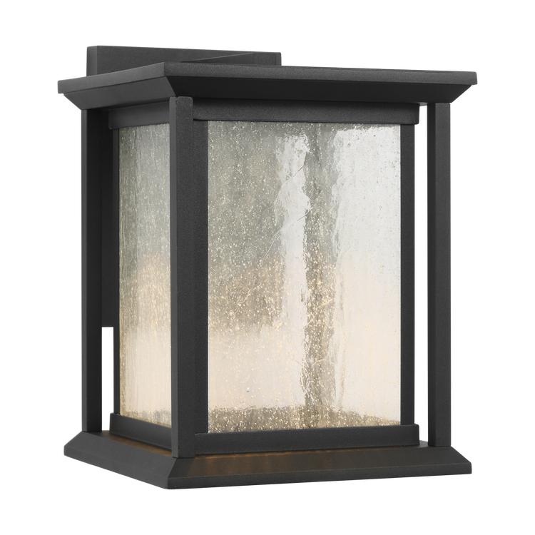 Audley Small LED Lantern Textured Black Distressed Seeded Glass Bulbs Inc