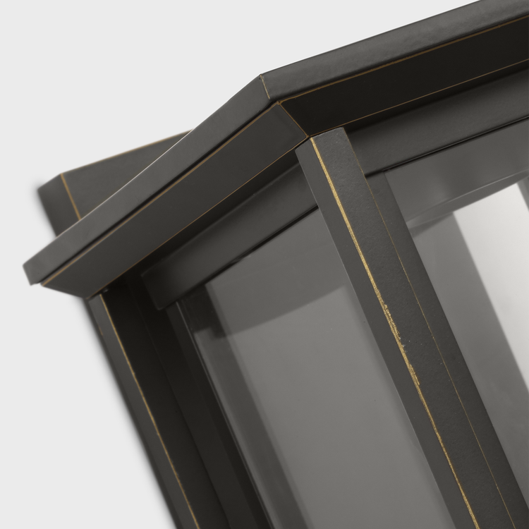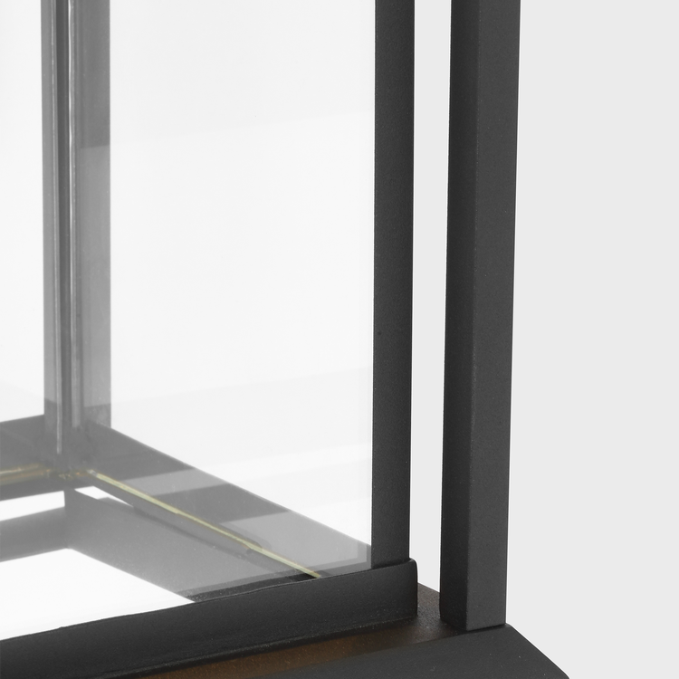 The Audley Small LED Lantern uses an integrated LED source behind a glass pane, producing softened illumination within a streamlined frame. Compact in scale, it fits narrow entries, side doors, or secondary exterior applications where efficient, long-lasting light is required. Dark Sky friendly. Designed to emit no light above the 90° horizontal plan.