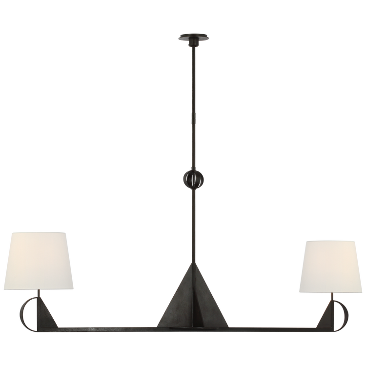 Auxerre Extra Large Blacksmith Linear Chandelier in Aged Iron with Linen Shades Open Box