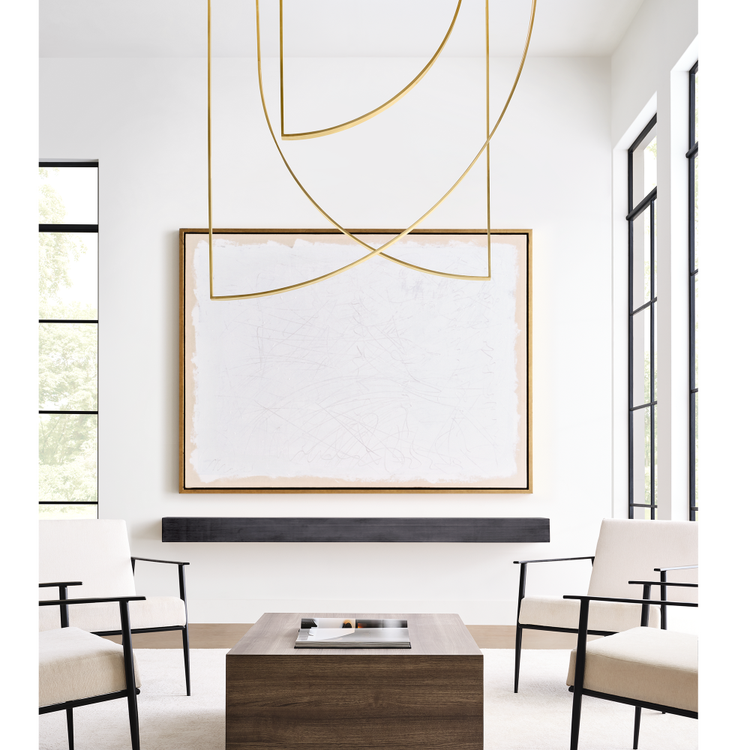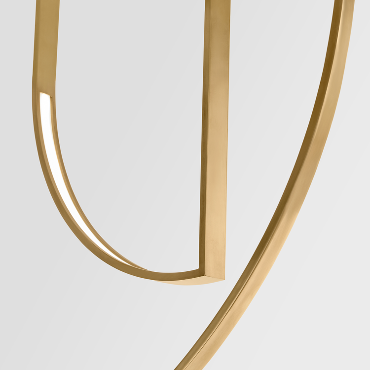 Baku 49" Chandelier by Sean Lavin is a study in sculptural minimalism, defined by sweeping forms and a refined, architectural presence. Designed as a mud-in installation, the fixture integrates seamlessly into the ceiling, eliminating visible hardware for a clean, uninterrupted surface. An optional decorative plate is included for those who prefer a subtle metallic accent. The 49" profile is ideal for living rooms, dining rooms, great rooms, and large bedrooms. Baku’s sweeping arms encase an indirect integrated LED light source, diffused through soft silicone to cast a generous, ambient glow. A beveled metal edge detail enhances the fixture’s modern silhouette. Highly adjustable with a standard downrod set, Baku can be installed as a single statement or layered in multiples to create dynamic compositions.