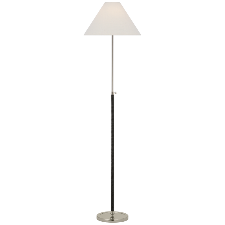 Basden 57" Adjustable Floor Lamp in Polished Nickel and Black Rattan with Linen Shade