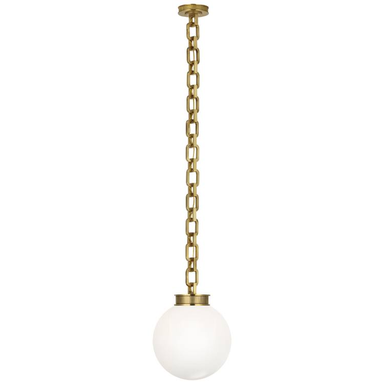 Bellamy 1 Light Statement Chain 12" Globe Chandelier in Soft Brass with White Glass