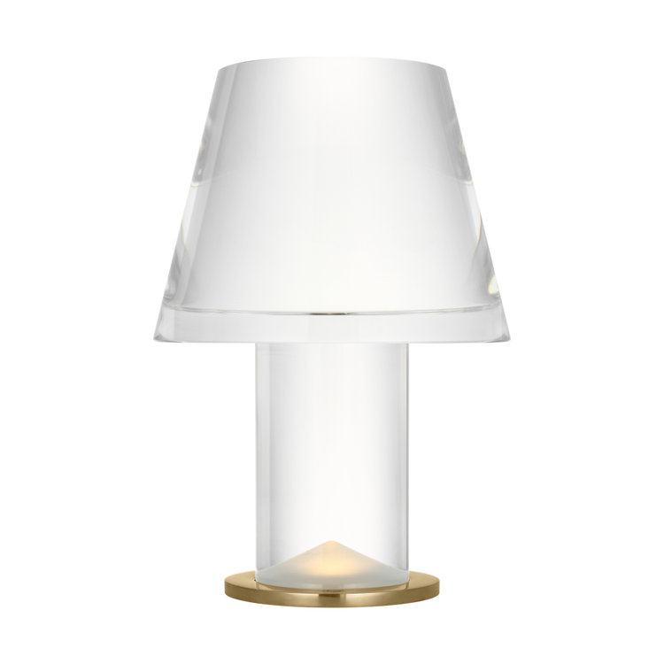 With its timeless silhouette and precision detailing, the Beryl 17" Tapered Table Lamp offers a refined interpretation of classic form. The tapered crystal body?etched at the base to diffuse light?elevates the visual weight of the design while maintaining a sense of airy translucency. The warm brass base anchors the composition, and an integrated LED casts a welcoming glow that enhances both ambiance and form. Ideal for living rooms, bedside settings, or styled in pairs, this lamp balances architectural sophistication with luminous warmth.