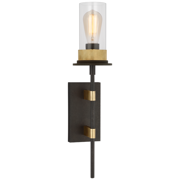 Beza Large Tail Sconce in Warm Iron and Antique Brass with Clear Glass Open Box