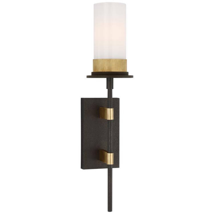 Beza Large Tail Sconce in Warm Iron and Antique Brass with White Glass Open Box