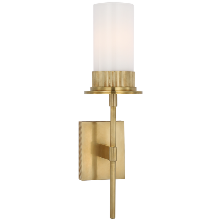 Beza Medium Tail Sconce in Antique Brass with White Glass Open Box
