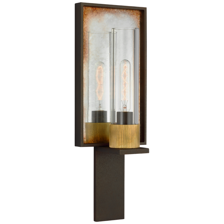 Beza Single Reflector Sconce in Warm Iron and Antique Mirror with Clear Glass Open Box