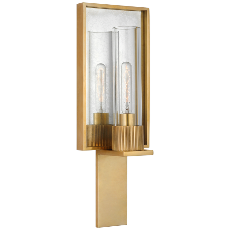 Beza Single Reflector Sconce in Antique Brass and Antique Mirror with Clear Glass Open Box