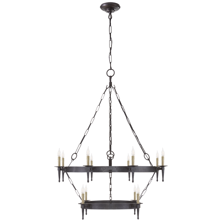 Branson Medium Two-Tiered Ring Torch Chandelier in Aged Iron Open Box
