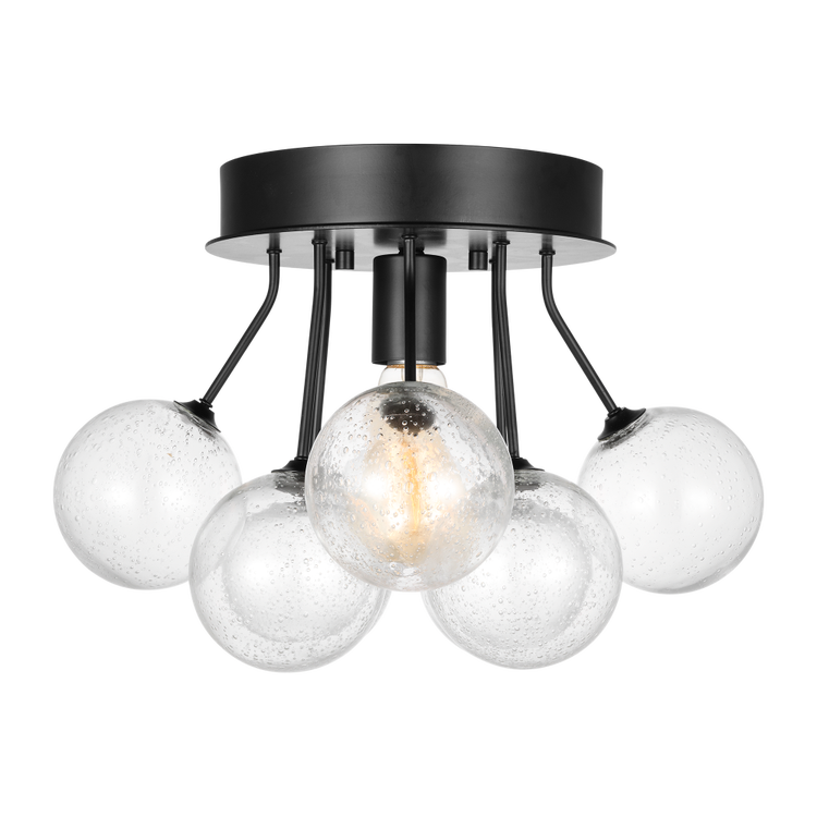Bronzeville brings a daring, upscale element of mid-century modern design to any space. Hand blown, Seeded Glass globes encircle warm, glowing, filament lamps, diffusing the light to create a serene ambiance of light and shadow. Available in two finishes.