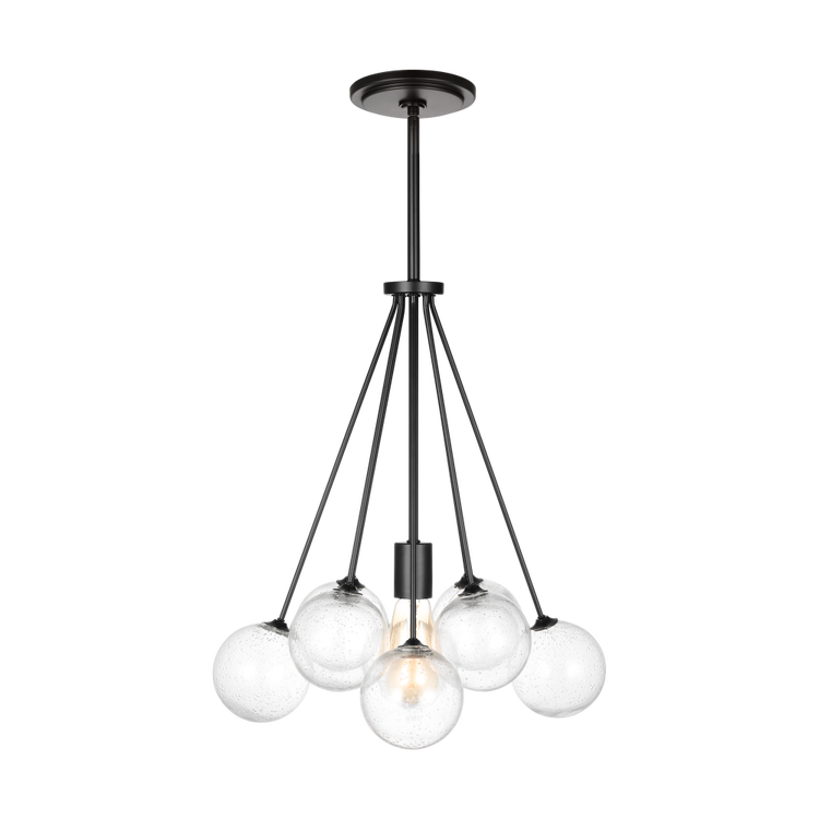 Bronzeville brings a daring, upscale element of mid-century modern design to any space. Hand blown, Seeded Glass globes encircle warm, glowing, filament lamps, diffusing the light to create a serene ambiance of light and shadow. Available in two finishes.