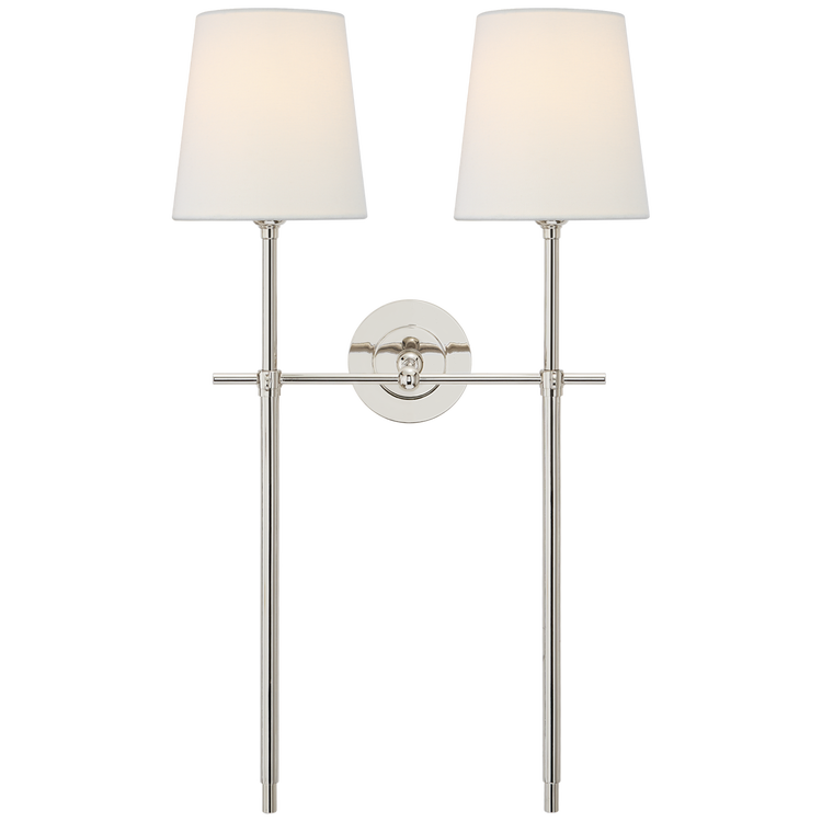 Bryant Large Double Tail Sconce in Polished Nickel with Linen Shades Open Box
