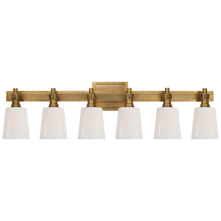 Bryant Six-Light Linear Bath Sconce in Hand-Rubbed Antique Brass with White Glass Open Box
