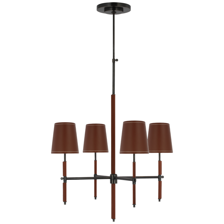 Bryant Small Wrapped Chandelier in Bronze and Saddle Leather with Saddle Leather Shade
