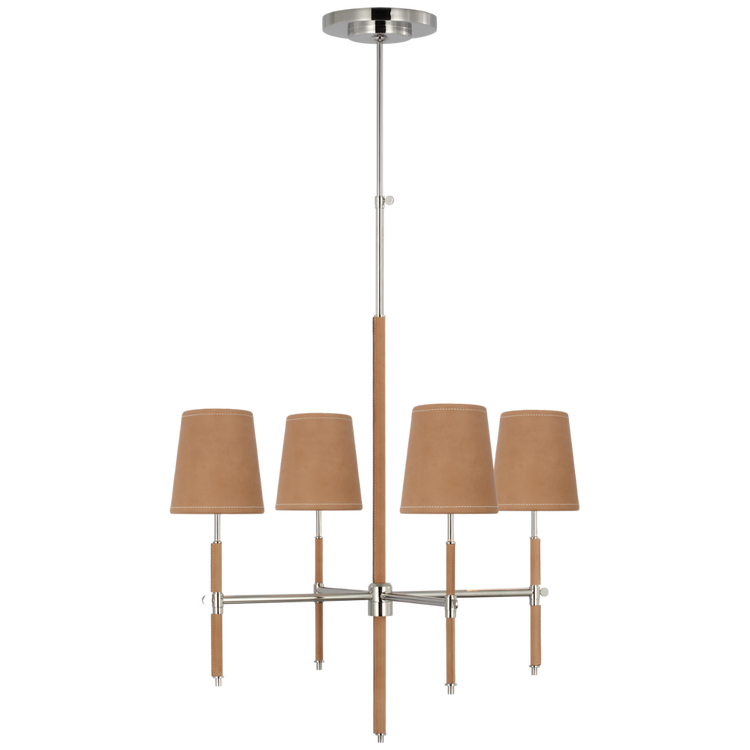 Bryant Small Wrapped Chandelier in Polished Nickel and Natural Leather with Natural Leather Shade