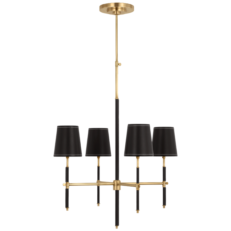 Bryant Small Wrapped Chandelier in Hand-Rubbed Antique Brass and Chocolate Leather with Chocolate Leather Shade