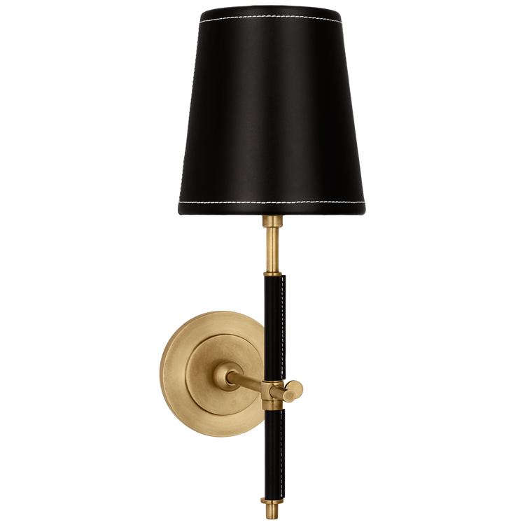 Bryant Wrapped Sconce in Hand-Rubbed Antique Brass and Chocolate Leather with Chocolate Leather Shade