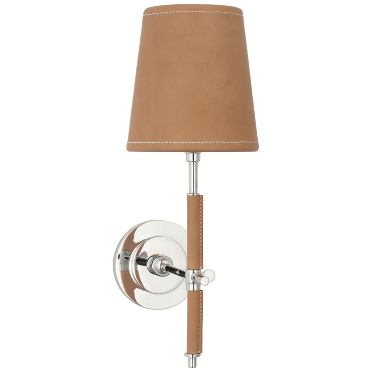 Bryant Wrapped Sconce in Polished Nickel and Natural Leather with Natural Leather Shade