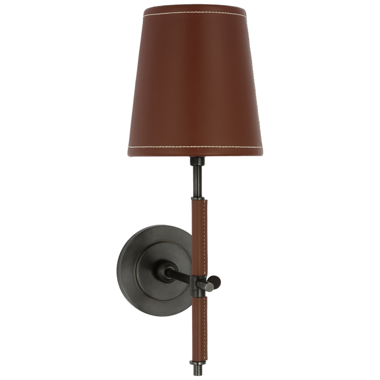 Bryant Wrapped Sconce in Bronze and Saddle Leather with Saddle Leather Shade