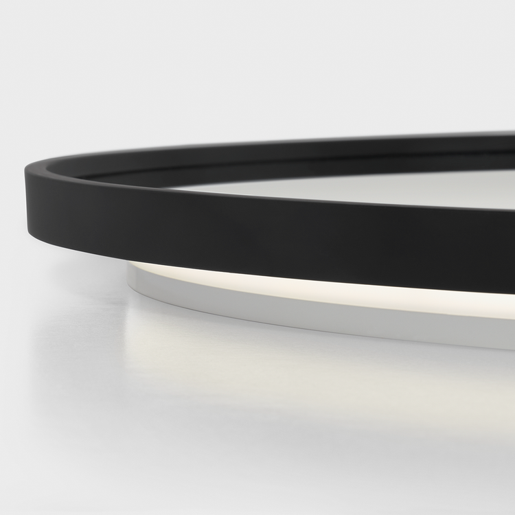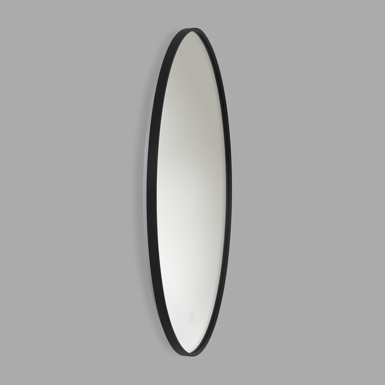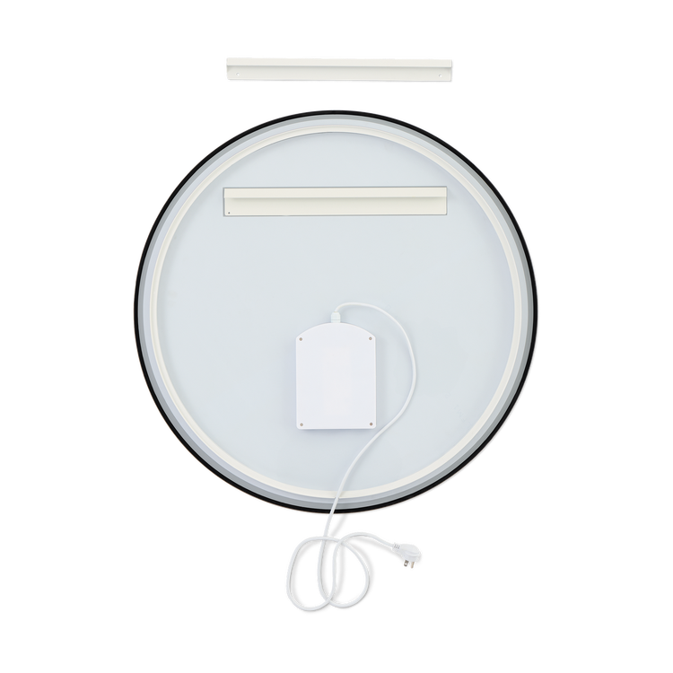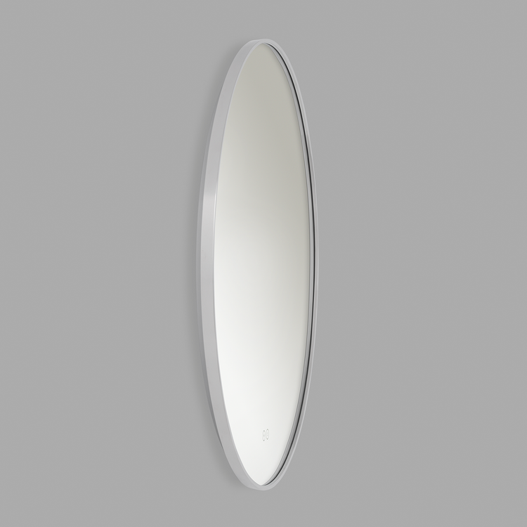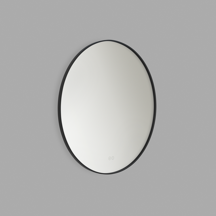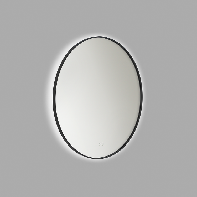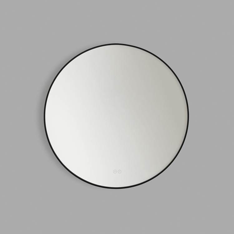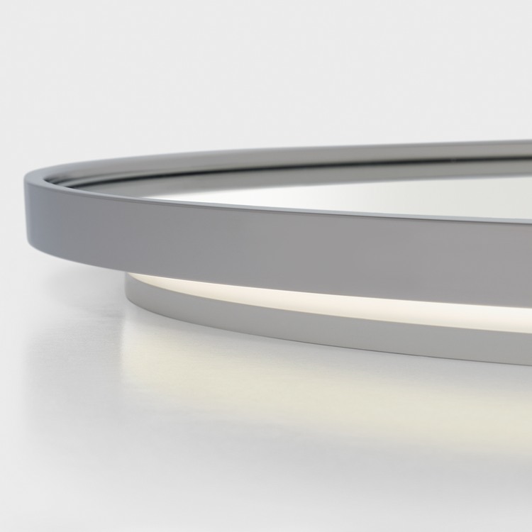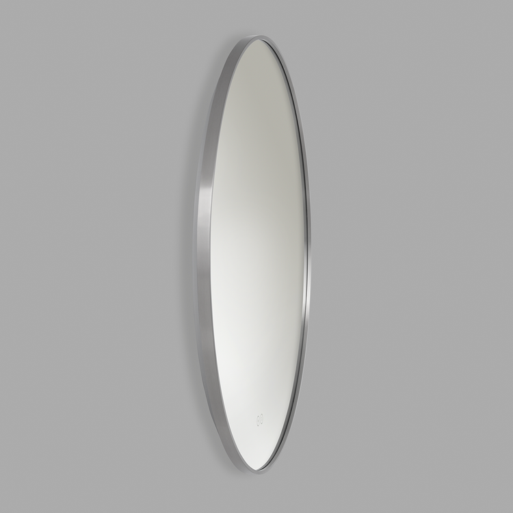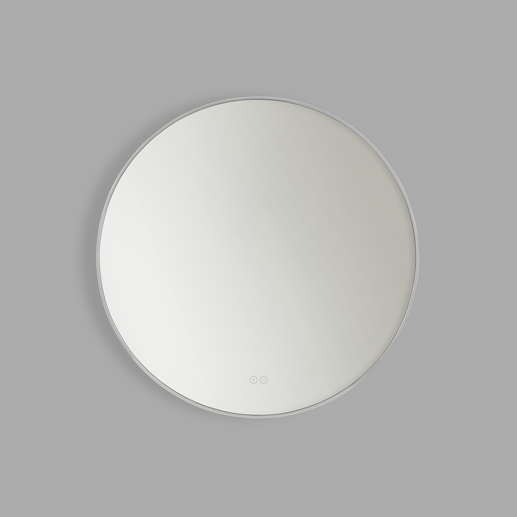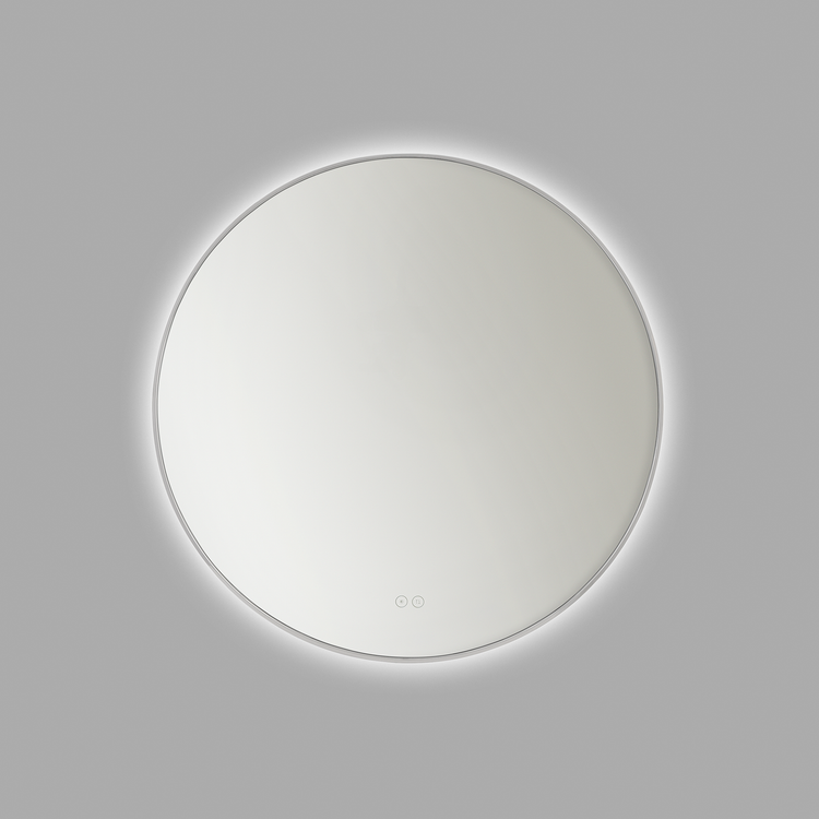 The round Cadre mirror by Generation Lighting features a warm backlit glow that creates a sophisticated statement. Functional yet subtle on-mirror touch controls allow you to dim the LED's intensity and adjust the color temperature as your needs change from task to mood lighting. The Cadre mirror is finished with a thin Brushed Nickel edge adding an elegant accent to the Cadre's simple aesthetic.