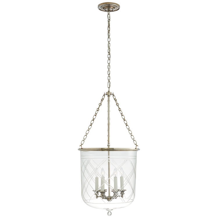 Cambridge Large Smoke Bell Lantern in Butler's Silver with Clear Glass Open Box