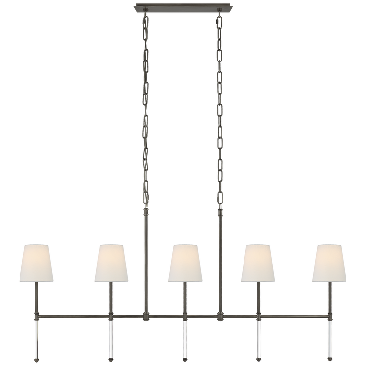 Camille Medium Linear Chandelier in Bronze with Linen Shades Open Box