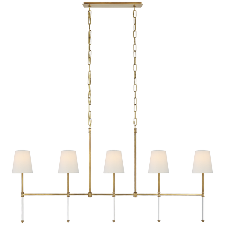 Camille Medium Linear Chandelier in Hand-Rubbed Antique Brass with Linen Shades Open Box