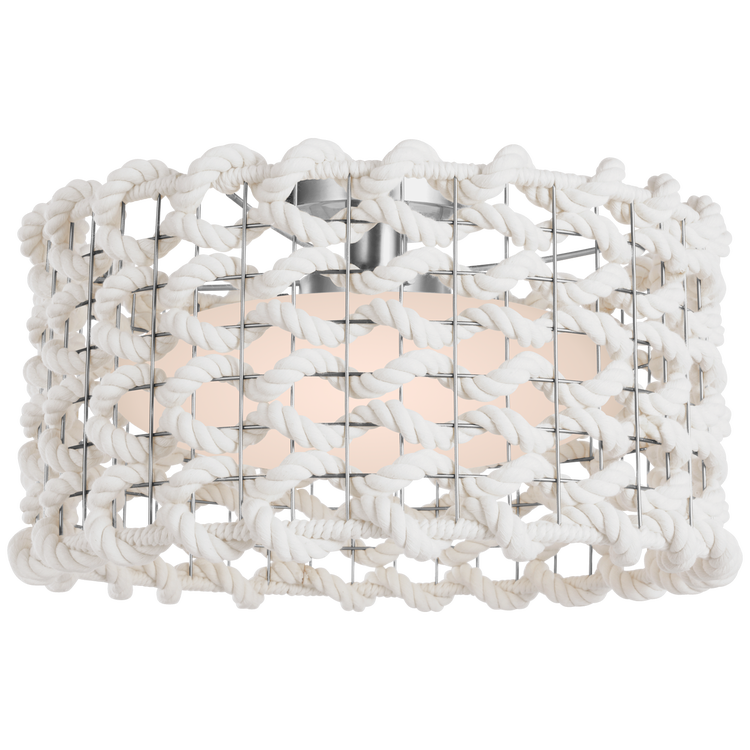 Catania 17" Flush Mount in Polished Nickel with Cream Woven Rope
