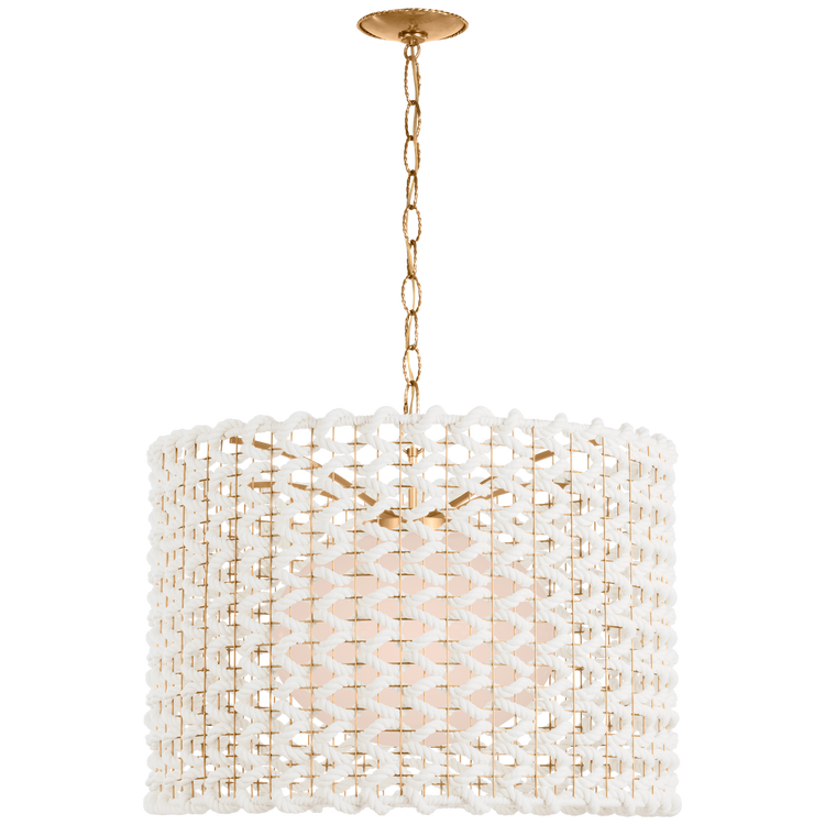 Catania 30" Hanging Shade in Antique-Burnished Brass with Cream Woven Rope