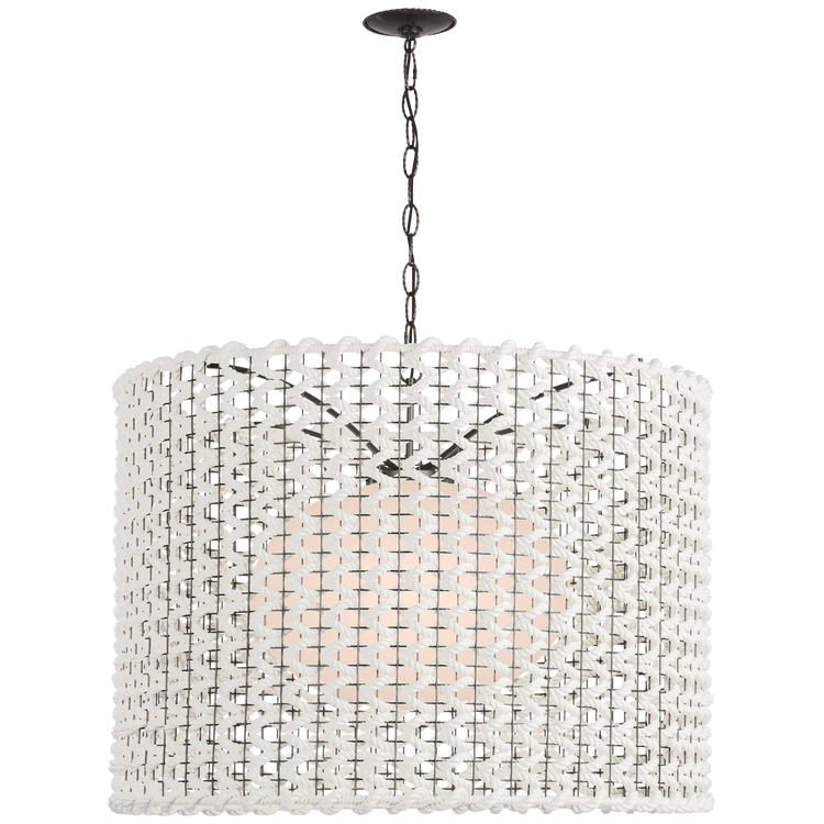 Catania 40" Hanging Shade in Antique-Burnished Brass with Cream Woven Rope