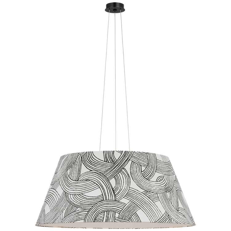 Caufield 39" Hanging Shade in Bronze with Schumacher Taupe Abstract Leaf Shade