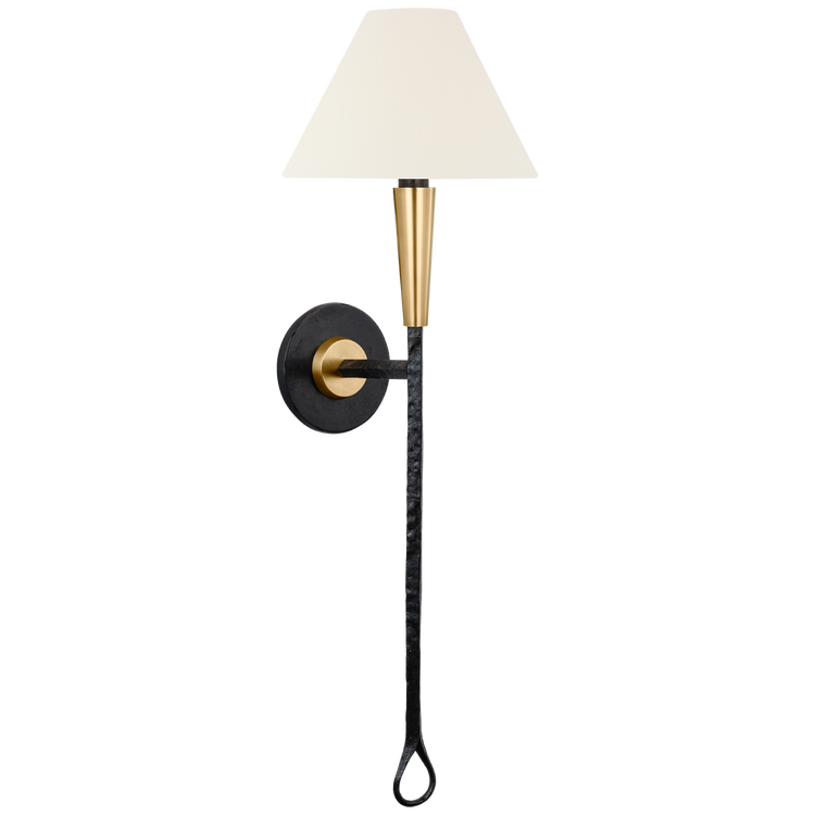 Cavalli 27" Tail Sconce in Aged Iron and Hand-Rubbed Antique Brass with Linen Shade Open Box