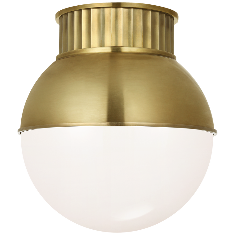 Cavill 12" Flush Mount in Natural Brass with Natural Brass Hood and White Glass