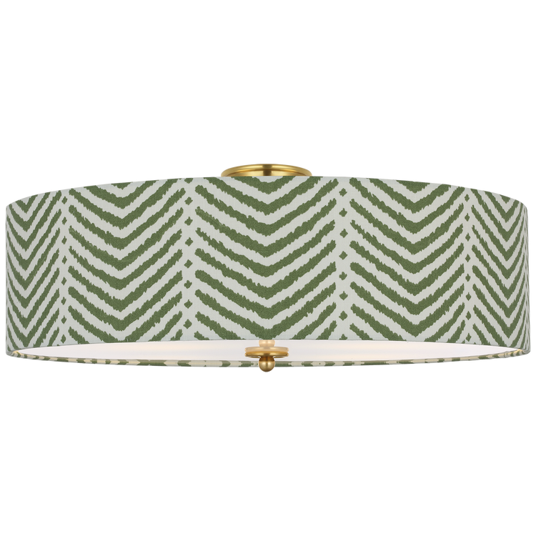 Cheever 26" Flush Mount in Hand-Rubbed Antique Brass with Schumacher Verde La Jolla Shade