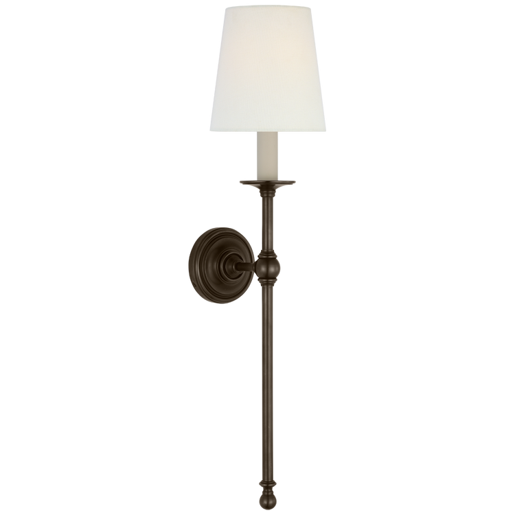 Classic 27" Tail Sconce in Bronze with Linen Shade