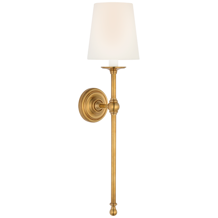 Classic 27" Tail Sconce in Antique-Burnished Brass with Linen Shade