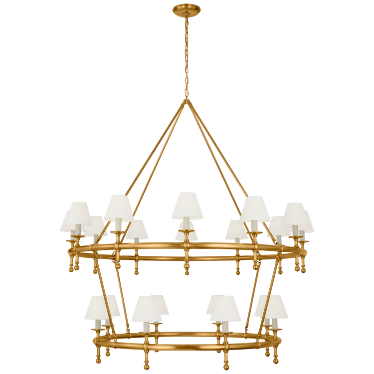 Classic 54" Two-Tier Ring Chandelier in Antique-Burnished Brass with Linen Shades