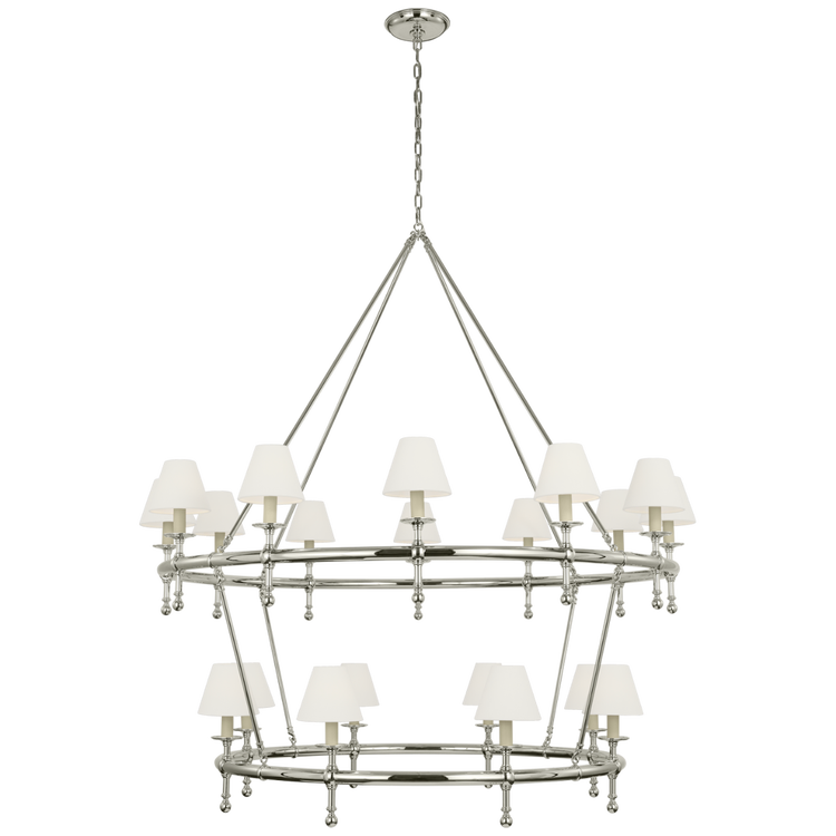 Classic 54" Two-Tier Ring Chandelier in Polished Nickel with Linen Shades