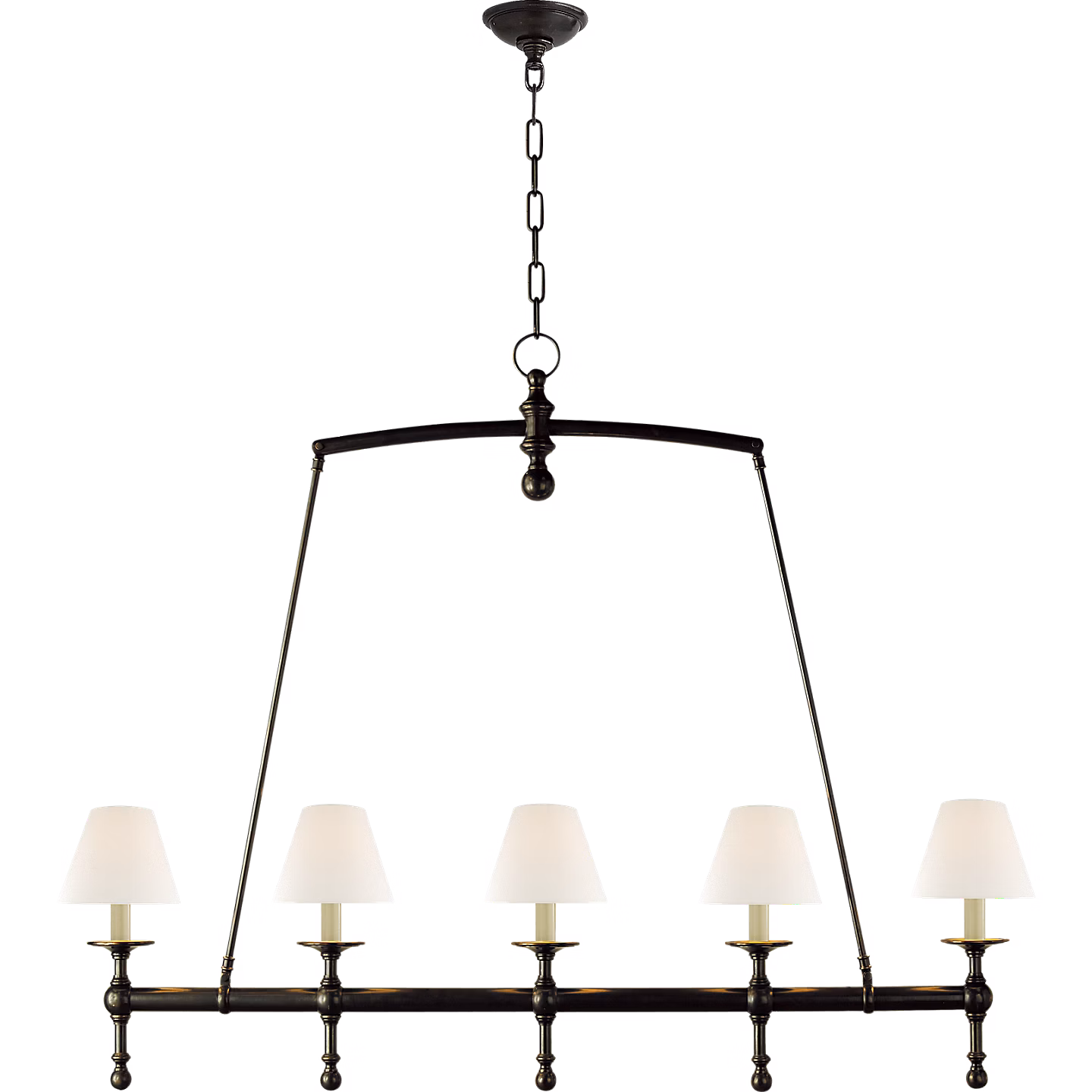 Classic Linear Chandelier in Hand-Rubbed Antique Brass with Linen Shades
