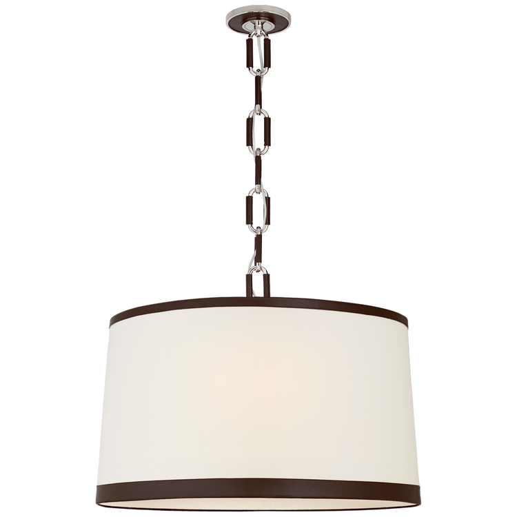 Cody Large Hanging Shade in Polished Nickel with Linen Shade and Chocolate Leather Trim Open Box