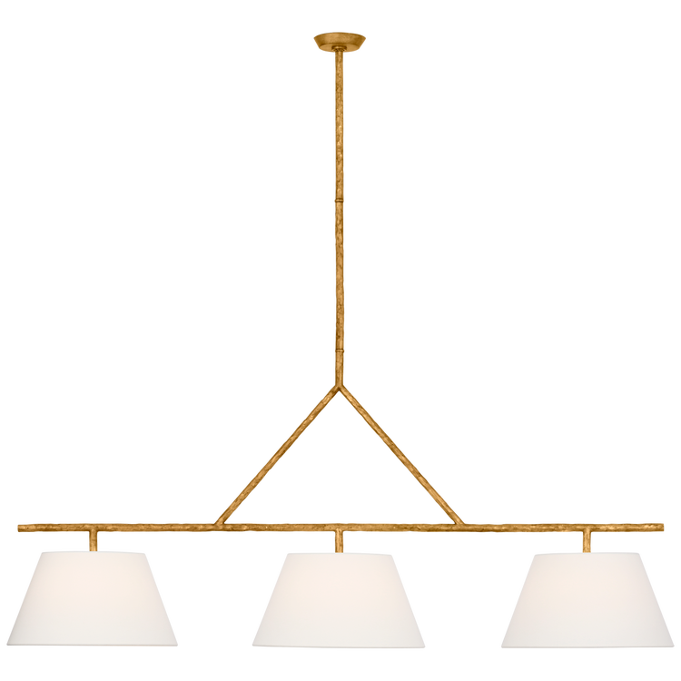 Collette 70" Linear Chandelier in Gilded Iron with Linen Shades