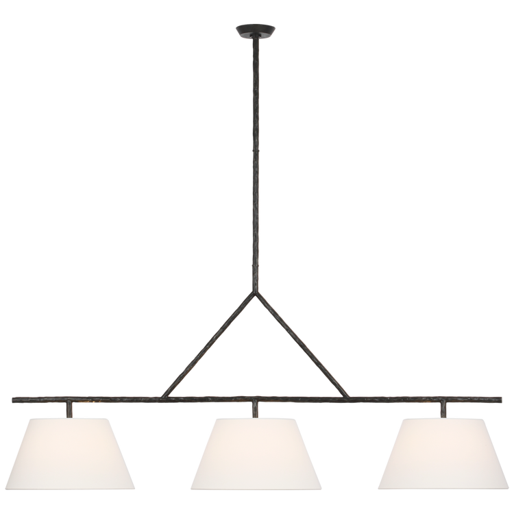 Collette 70" Linear Chandelier in Aged Iron with Linen Shades